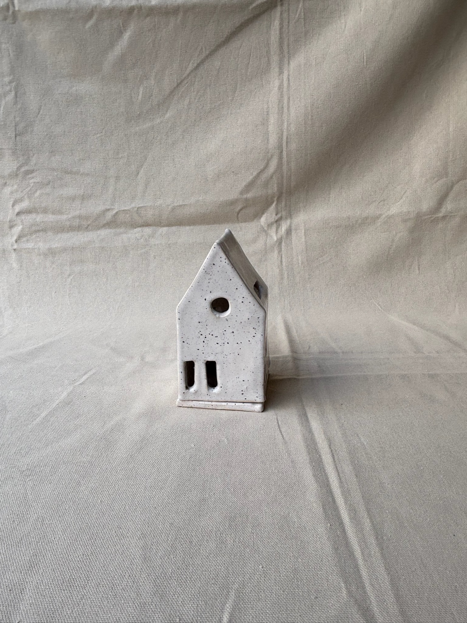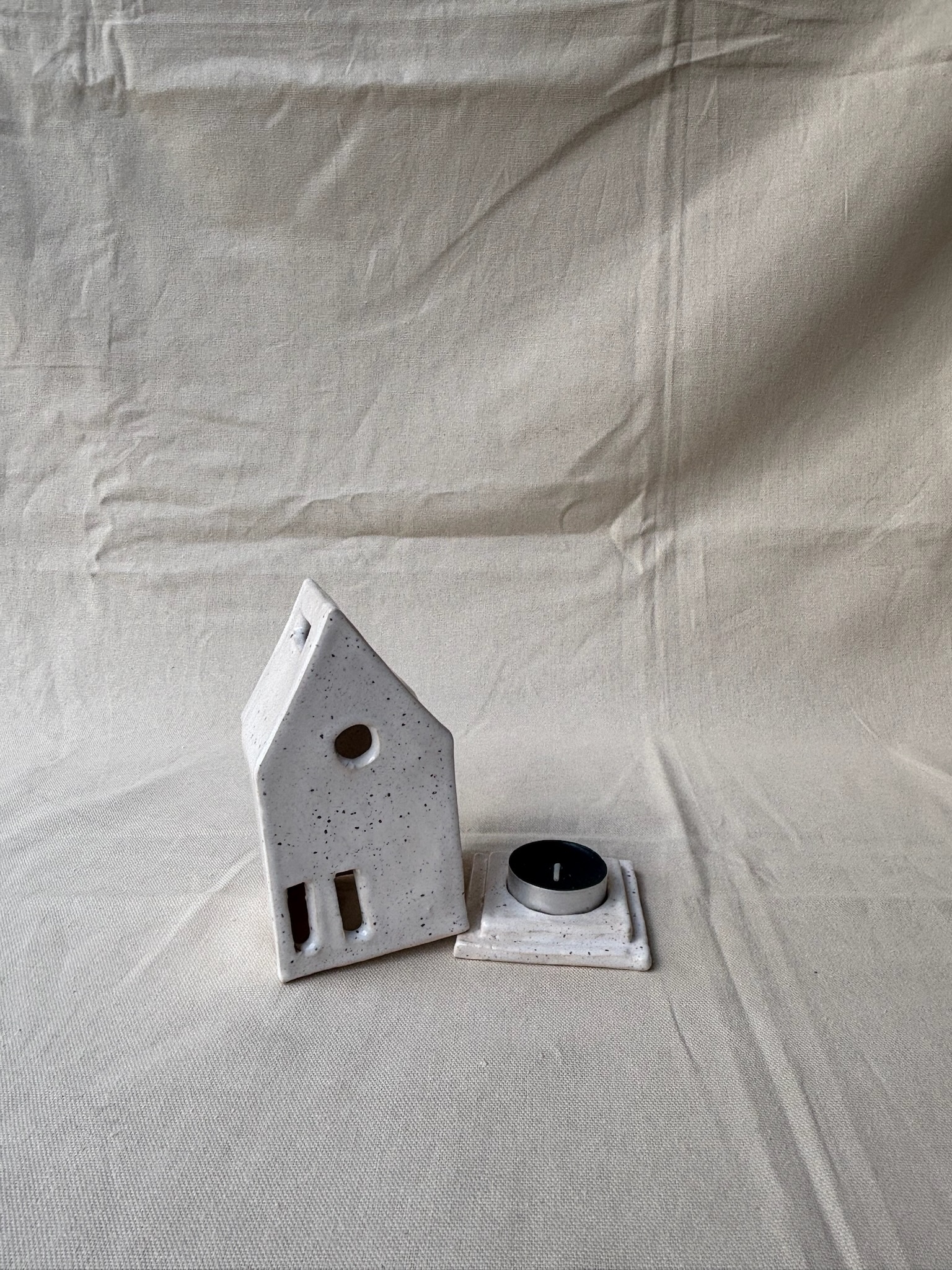Dit sfeervolle kaarslicht huisje is met de hand gevormd uit klei, waardoor elk exemplaar een eigen karakter heeft. Het warme licht dat door de kleine raampjes straalt, creëert een cosy en uitnodigende sfeer in elke ruimte. De natuurlijke textuur van de klei geeft het huisje een rustieke, ambachtelijke uitstraling. Perfect als knus accent op tafel, in de vensterbank of als hartverwarmend cadeautje.