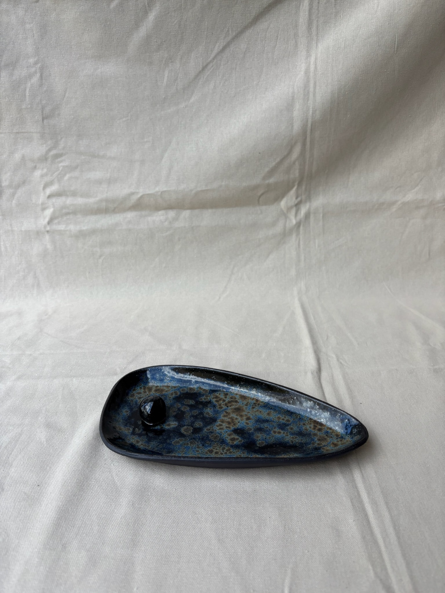 Deze speels gekleurde wierookschaal is met de hand gemaakt uit klei, waardoor elk stuk uniek is. De levendige kleuren en organische vorm brengen een vrolijke, ambachtelijke sfeer in je interieur. Perfect voor het branden van wierookstokjes, terwijl de warme tinten van de klei zorgen voor een rustgevende uitstraling. Een charmant detail voor in huis of als persoonlijk cadeautje.